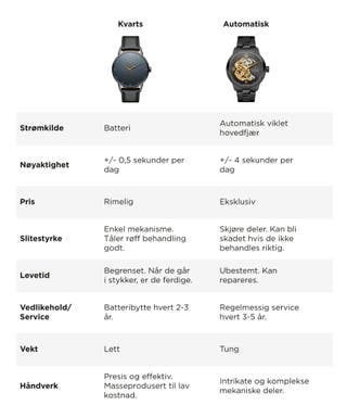 KVARTS VS AUTOMATISKE KLOKKER : VIKTIGE FORSKJELLER