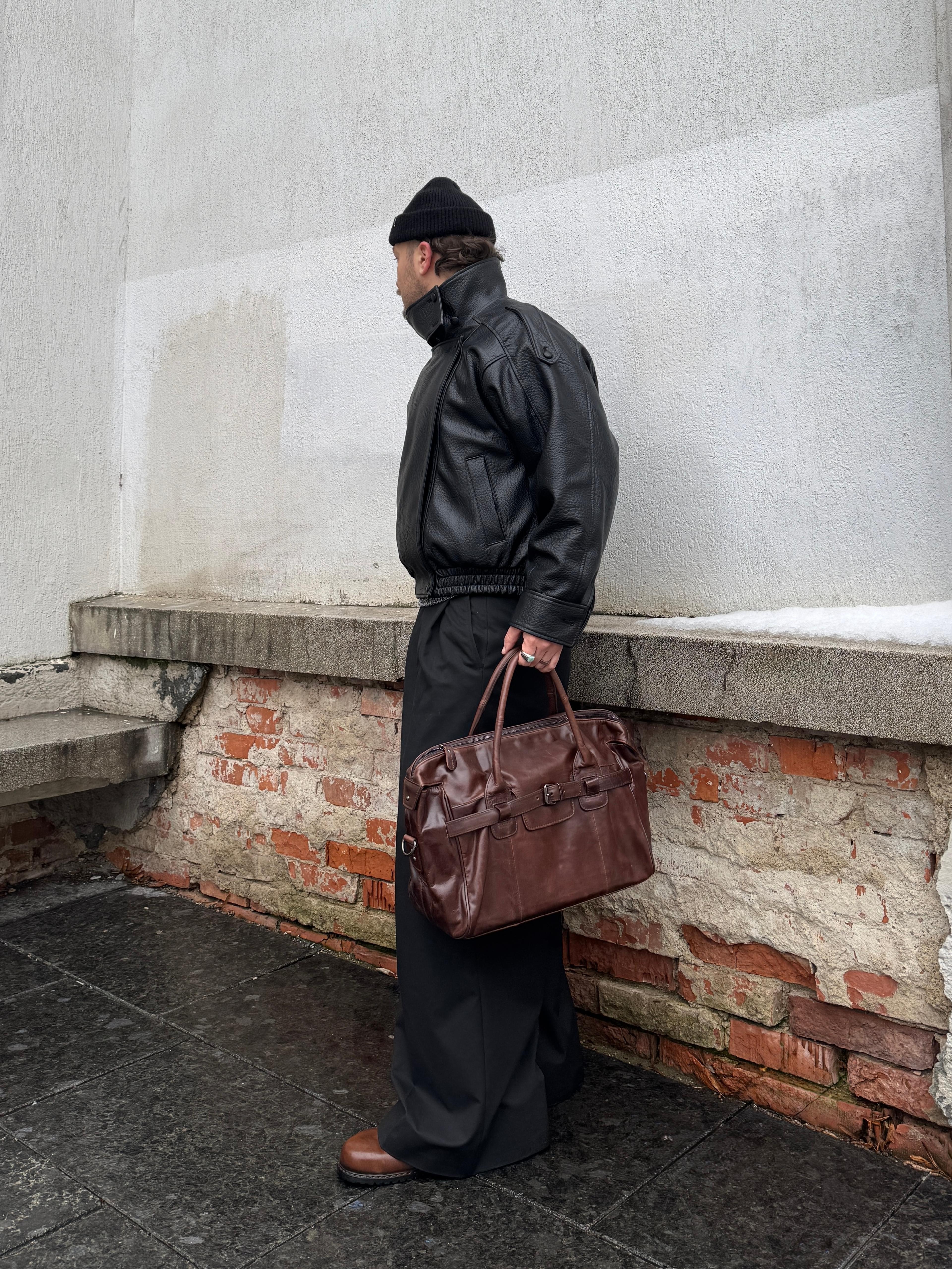 Mørkebrun resirkulert ullue med mansjett